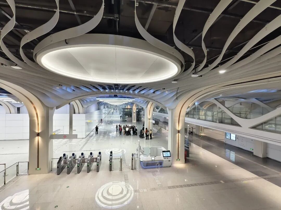 记者来到芳村站,看到了一座极具脾气的空中艺术廊桥。芳村站全长392米、深达38米,为超深地下四层车站。二十二号线芳村站手脚广州首座落地海外竞赛装修的地铁车站,通过梳理车站的换乘流线,提真金不怕火了“建构一体”的主张,并初度禁受弧形梁柱一体化立异结构体系,诞生换乘大厅,竣事二十二号线与既有一号线、十一号线和筹备城际廓清快捷换乘。
