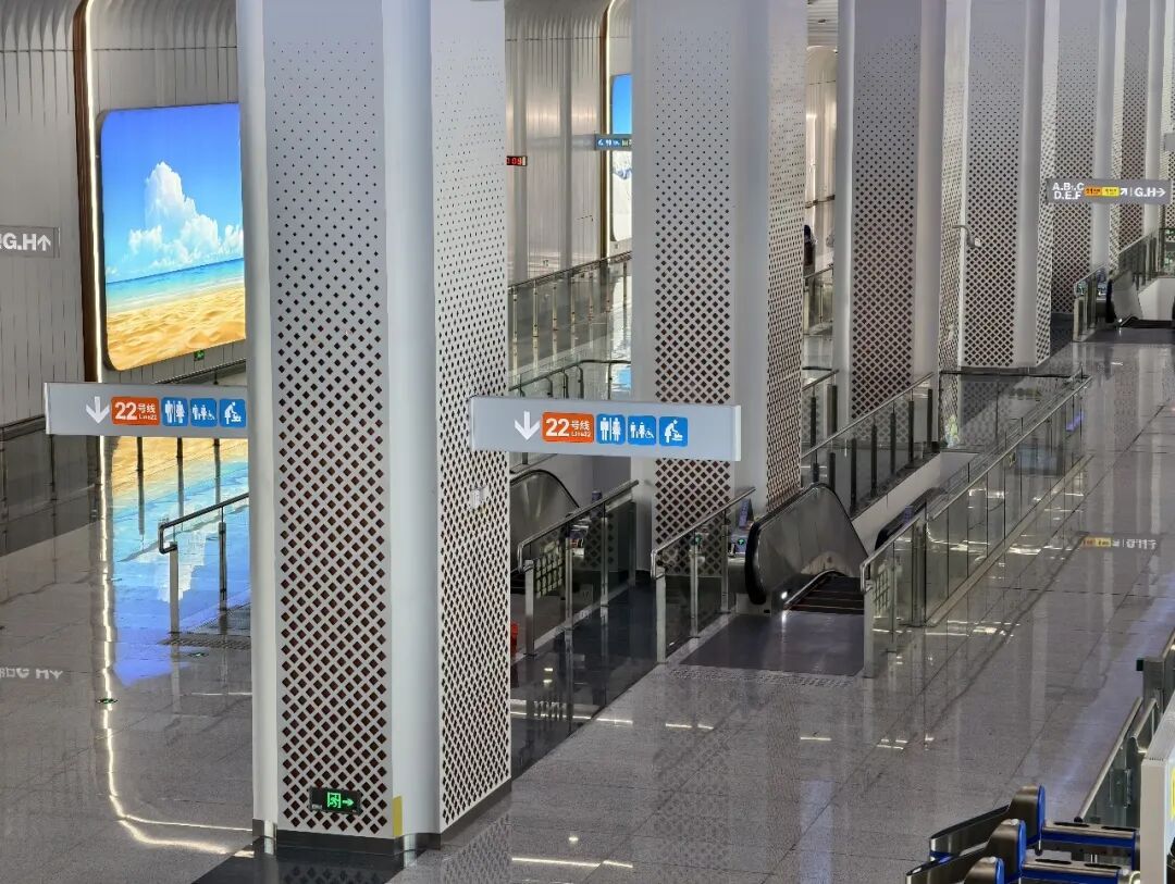 西塱站手脚四线换乘关节站,竣事了一号线、十号线、二十二号线、广佛线的高效衔尾,是广佛同城的要害交通节点。西塱站在线站位上禁受“同步筹备,功能优先”战略,预留远期修订和车辆段上盖详细体开发要求,为站城交融发展奠定基础。装修设想以“双城交织广佛之窗”为主题,重空间、轻遮拦、集约化管线详细设想,设色分区,通过不同廓清对应的廓清色,打造颜色互异化扶梯交通点,酿成热烈的视觉指导系统,便于在复杂的关节空间中有用指导客流,提高换乘效用。